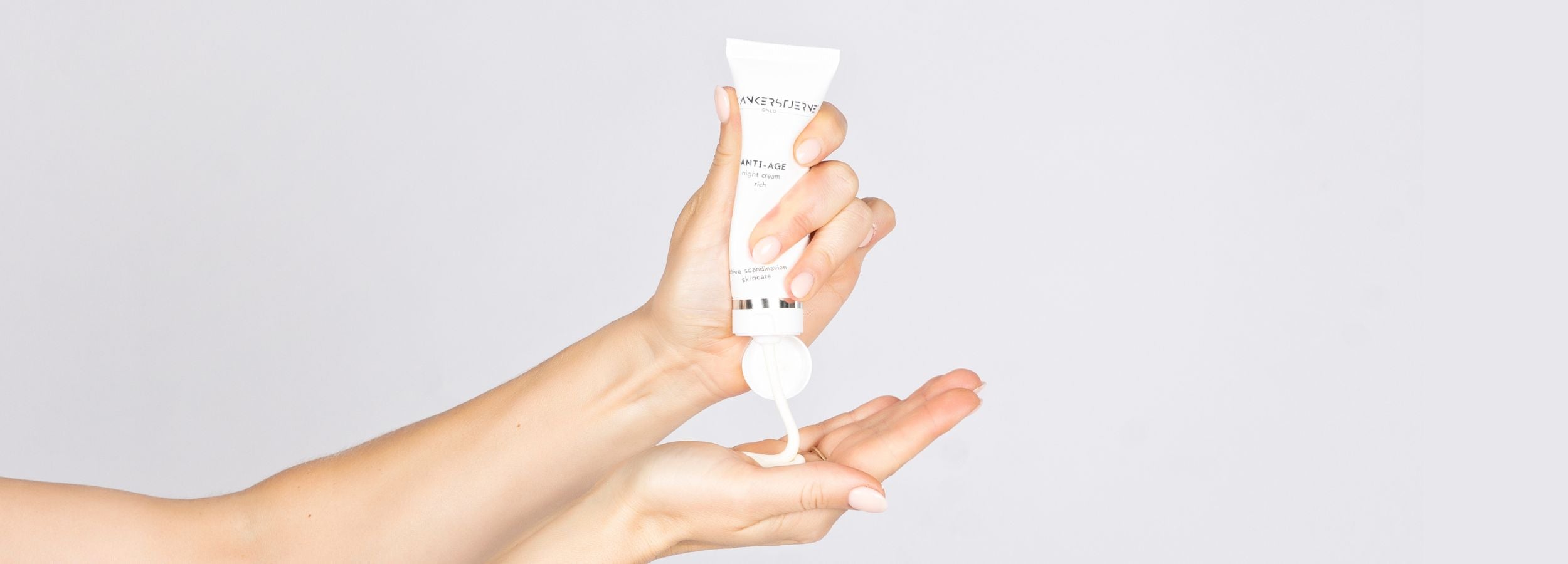 Vår rika nattkräm ANTI-AGE nattkräm rik, med sitt höga innehåll av fettsyror, är mycket lämplig för torr, fuktfattig, vuxen och känslig hud. ANTI-AGE nattkräm rik har en unik fettsyrakombination som stärker hudens barriär och hudens naturliga motstånd. Fettsyrakombinationen har låg comedogenicitet och täpper inte till porerna.