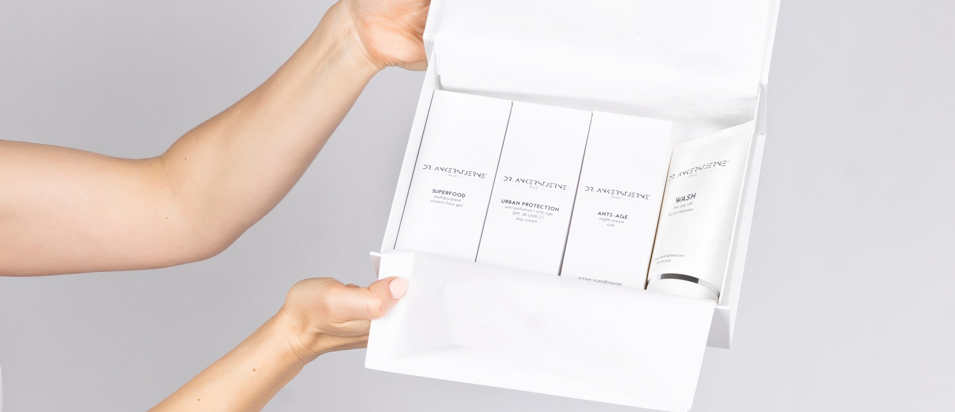 THE SET utgör en komplett hudvårdsrutin. På morgonen, applicera Superfood serum på rengjord hud, följt av Anti-Pollution daycream. På kvällen, rengör din hud med Wash the day off ansiktsrengöring. Wash löddras lätt på fuktig hud. Skölj av med vatten. Avsluta med Anti-age nightcream rich.
